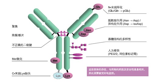 ????抗體是一種結構復雜的糖蛋白。即使是天然抗體,其結構也是各不相同??贵w類藥物在其生產工藝(培養(yǎng)、分離純化)或貯存過程中容易導致產品的不均一性,所以在藥物研發(fā)以及純化、生產過程中,對抗體藥物的定量和定性的分析時非常重要的。