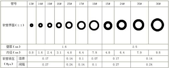 9、流量范圍:?每種軟管對(duì)應(yīng)固定的轉(zhuǎn)速范圍,我們根據(jù)客戶的需要的流量范圍選擇相應(yīng)軟管。具體數(shù)據(jù)見(jiàn)各種軟管流量范圍對(duì)照表: