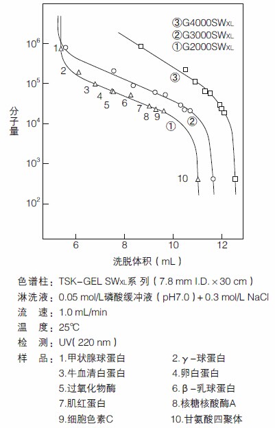 TSKgel SWxl柱的蛋白質(zhì)校準曲線
