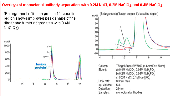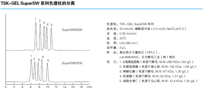 3. TSKgel SuperSW柱有內(nèi)徑為4μm的顆粒,能實現(xiàn)最高分辨率。窄至4.6mm內(nèi)徑的柱能在一定量的樣品質(zhì)量范圍內(nèi)提高高靈敏度。