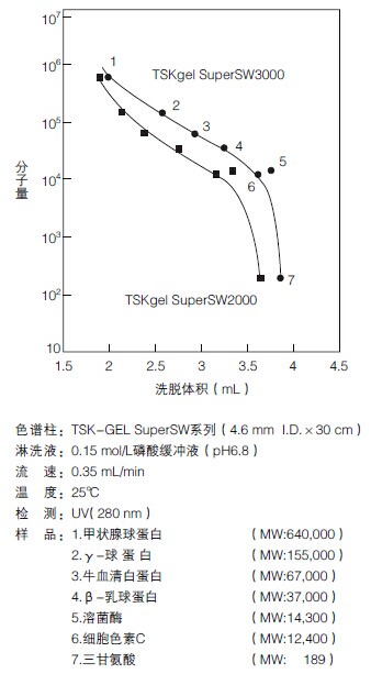 TSKgel SuperSW柱的蛋白質(zhì)校準曲線
