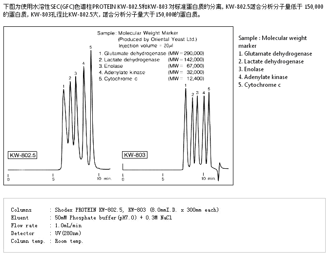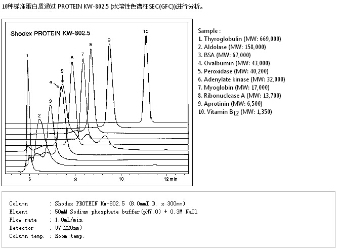 蛋白質(zhì)的分子量范圍(流動相 :磷酸緩沖液)