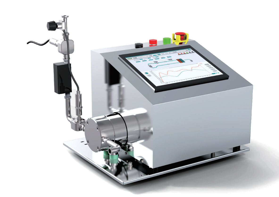 ? ?QuikSep SF簡易超濾系統(tǒng)設計全面符合cGMP,采用德國QuattroFlow隔膜泵,控制界面采用彩色觸摸屏,顯示泵速等信息,能實時監(jiān)測壓力及TMP變化,透過端紫外變化,并可設置各參數(shù)報警值,也可實現(xiàn)恒壓運行或恒定TMP運行,保證工藝可控性。