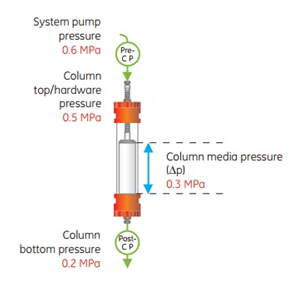 對(duì)于不同規(guī)格的層析柱,要有不同規(guī)格的管路與之相匹配。首先要求管路不能太粗,降低死體積,其次要求在不接層析柱的情況下,運(yùn)行工藝流速時(shí)系統(tǒng)背壓仍接近于零,這樣即可視為管路規(guī)格與層析柱相匹配。也因如此,設(shè)計(jì)合理的層析系統(tǒng),可以不配備柱后壓力傳感器。這時(shí),僅需設(shè)定柱前壓力報(bào)警值即可。