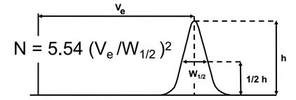 ? ? ?評價(jià)標(biāo)準(zhǔn):一般情況下,認(rèn)為HETP <4倍粒徑大小即為比較理想的柱效。比如裝填平均粒徑90 μm的Sepharose填料,則要求HETP <360 μm,通過計(jì)算,要求每米理論塔板數(shù) >2778。或可根據(jù)實(shí)際情況,將柱效標(biāo)準(zhǔn)定為每米理論塔板數(shù) ≥3000。