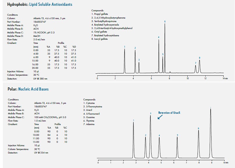 1. 在增強(qiáng)極性化物保留能力的同事,維持了對(duì)中等和強(qiáng)疏水化合物的適度保留能力。